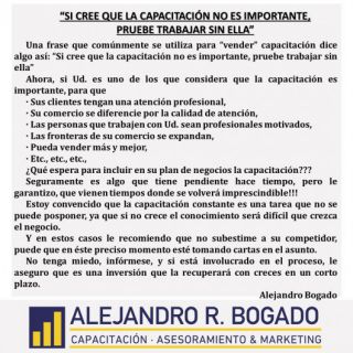 Una frase que comúnmente se utiliza para “vender” capacitación dice algo así: