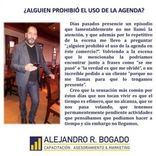 Días pasados presencie un episodio que lamentablemente no me llamó la atención, y que además por lo repetitivo de la escena me llevo a preguntar “¿alguien prohibió el uso de la agenda en éste comercio?”.