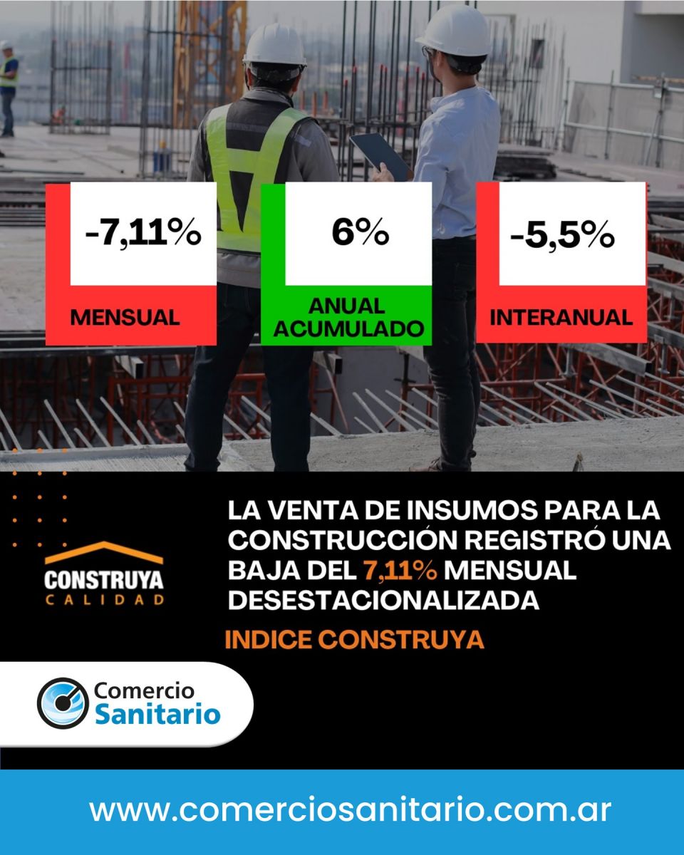 En noviembre el Índice Construya (IC), que mide la evolución de los volúmenes vendidos al sector privado de los productos para la construcción que fabrican las empresas que lo conforman, registró una baja del 7,11% mensual desestacionalizada, al tiempo que se ubicó 5,5% por debajo del nivel de noviembre de 2024.