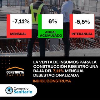 📈 Primer dato del año: qué revela el Índice Construya de Enero: En enero el Índice Construya (IC), que mide la evolución de los volúmenes vendidos al sector privado de los productos para la construcción que fabrican las empresas que lo conforman, registró una caída del 11,6% mensual desestacionalizada, al tiempo que se ubicó 1,1% por debajo de enero 2025. “La caída mensual de enero refleja un ajuste tras el cierre de año, en un contexto donde la actividad real de obra aún muestra cautela. Pero, el comportamiento de febrero y marzo será clave para poder evaluar de forma más precisa la dinámica sectorial en el año que acaba de comenzar”, explicaron desde Construya.