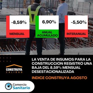En agosto el Índice Construya (IC) registró una baja del 8,59% mensual desestacionalizada, y en la comparación interanual el IC registró una baja de 5,5%. De esta forma, el acumulado de enero-agosto de 2025 cerró 6,9% por encima del mismo período del año anterior. " En los últimos dos meses la demanda...