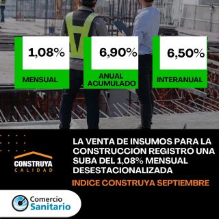 En septiembre el Índice Construya (IC), que mide la evolución de los volúmenes vendidos al sector privado de los productos para la construcción que fabrican las empresas que lo conforman, registró una suba del 1,08% mensual desestacionalizada, y en la comparación interanual el IC registró una recuperación del 6,5%. De esta forma, el acumulado de enero-septiembre de 2025 cerró 6,9% por encima del mismo período del año anterior.