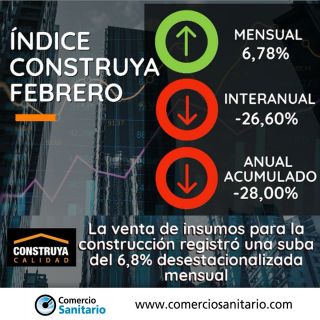 El Índice Construya (IC), que mide la evolución de los volúmenes vendidos al sector privado de los productos para la construcción que fabrican las empresas que lo conforman, registró una suba del 6,8% desestacionalizada mensual, pero se mantuvo un 26,6% por debajo del nivel de febrero 2023.