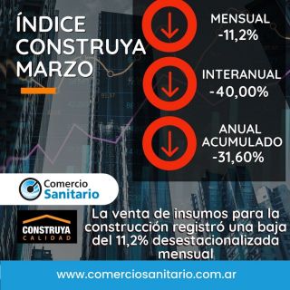 El Índice Construya (IC), que mide la evolución de los volúmenes vendidos al sector privado de los productos para la construcción que fabrican las empresas que lo conforman, registró una baja del 11,2% desestacionalizada mensual, y se mantuvo un 40% por debajo del nivel de marzo 2023.