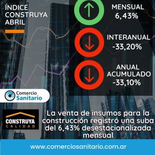 En abril el Índice Construya (IC), que mide la evolución de los volúmenes vendidos al sector privado de los productos para la construcción que fabrican las empresas que lo conforman, registró una recuperación de 6,43% desestacionalizada mensual, si bien se mantuvo 33,2% por debajo del nivel de abril 2023.