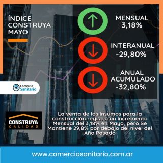 En mayo el Índice Construya (IC), que mide la evolución de los volúmenes vendidos al sector privado de los productos para la construcción que fabrican las empresas que lo conforman, registró 3,18% desestacionalizada mensual, si bien se mantuvo 29,8% por debajo del nivel de mayo 2023.