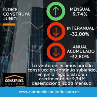 👉📊📈En junio el Índice Construya (IC), que mide la evolución de los volúmenes vendidos al sector privado de los productos para la construcción que fabrican las empresas que lo conforman, registró 9,74% desestacionalizada mensual, si bien se mantuvo 32% por debajo del nivel de mayo 2023.