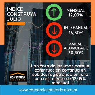 👉📊📈 En julio, el Índice Construya (IC), que mide la evolución de los volúmenes vendidos al sector privado de los productos para la construcción que fabrican las empresas que lo conforman, registró una recuperación de 12,09% mensual desestacionalizado, si bien se mantuvo 16,50% por debajo del nivel de julio de 2023.
