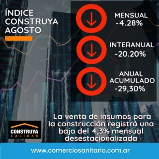 👉📊📈 En agosto el Índice Construya (IC), que mide la evolución de los volúmenes vendidos al sector privado de los productos para la construcción que fabrican las empresas que lo conforman, registró una baja del 4,3% mensual desestacionalizada, al tiempo que se mantuvo 20,1% por debajo del nivel de agosto de 2023. "En agosto se presentó una corrección en los despachos, dentro de una tendencia a la recuperación que se observa desde abril". explican desde Construya