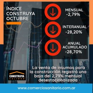 En octubre el Índice Construya (IC), que mide la evolución de los volúmenes vendidos al sector privado de los productos para la construcción que fabrican las empresas que lo conforman, registró una baja de 2,79% mensual desestacionalizada, y se mantuvo 28,20% por debajo del nivel de octubre de 2023.