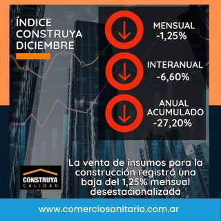 En diciembre el Índice Construya (IC), que mide la evolución de los volúmenes vendidos al sector privado de los productos para la construcción que fabrican las empresas que lo conforman, registró una baja de 1,25% mensual desestacionalizada, y se mantuvo 6,6% por debajo del nivel de diciembre de 2023.