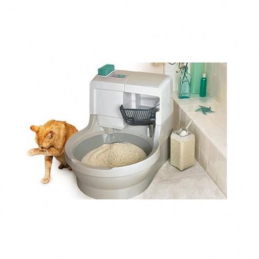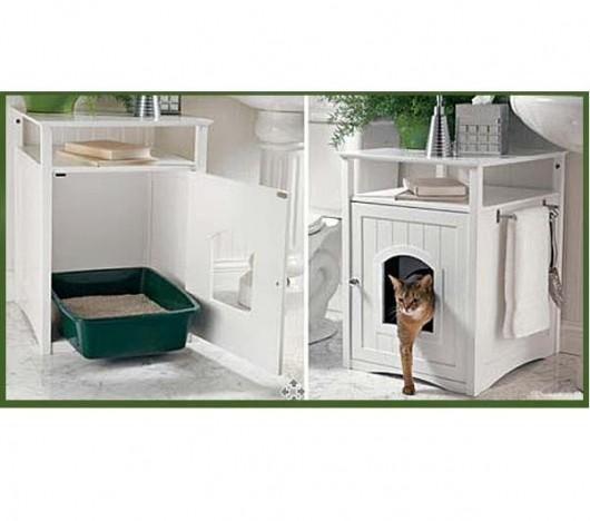 Existen diferentes inodoros para gatos que combinan casi con cualquier tipo de decoración y oculta la antiestética caja de arena, ayudando además a evitar los olores.