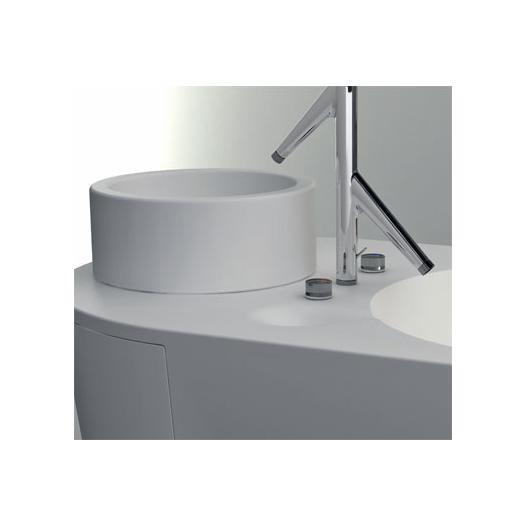 Gavin Harris diseño Shiro. El nombre de Shiro deriva de la palabra japonesa para el blanco, en la traducción filosófica es: la más pura de todas las formas y funciones, por lo tanto, Shiro es un elemento puro.El diseño cuenta con una bañera independiente con extremos redondeados ergonómicos para sentarse, un montón de espacio para almacenamiento previsto en los armarios debajo y espacio para una cuenca circular a incorporar.La plomería es centralizada con un solo punto de los residuos para la unidad y un surtidor principal de alimentación de agua a las griferías, tanto para la cuenca de superficie y baño, liberando paredes de accesorios.Shiro está hecho de Cristalplant, un producto de base biológica que retiene las propiedades de bienvenida de piedra natural.