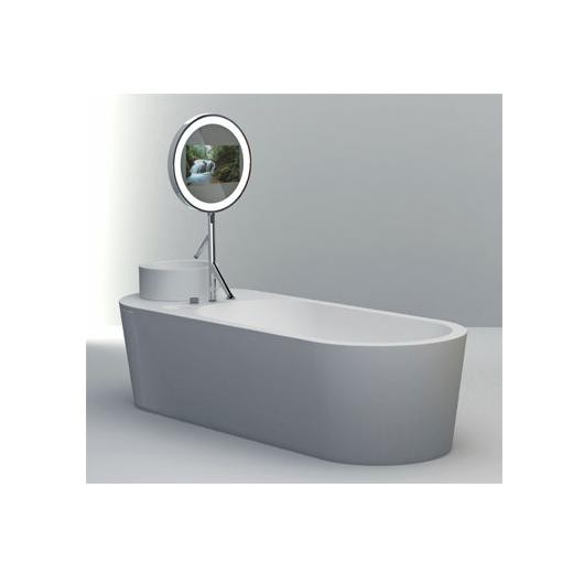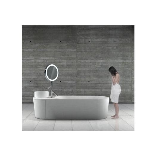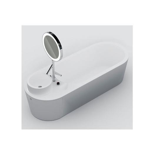 El diseño cuenta con una bañera independiente con extremos redondeados ergonómicos para sentarse, un montón de espacio para almacenamiento previsto en los armarios debajo y espacio para una cuenca circular a incorporar.
