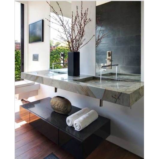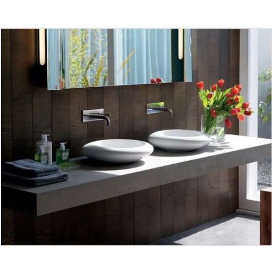 Hoy les presentamos cuatro fantásticos diseños de lavatorios modernos para un ambiente al que hoy en día se destina mucha energía y buenas ideas para su decoración de interiores. Todo sobre colores, formas y distribución, con las nuevas tendencias en lavatorios para baño.En primer lugar tenemos un bellísimo y exótico baño, con una distribución muy original y dimensiones amplias, así como también detalles en laja en marrón y gris, que perfectamente combinan con la madera y los pisos de porcelanato en color crema. En este caso se utiliza una mesada de apoyo en madera con una bacha color negra, de forma ovalada, moderna y muy original. Tenemos un espejo muy sencillo y una serie de muebles de puerta ciega, en melamina negra con dibujos de flores.En segundo lugar tenemos un lavatorio muy delicado, sencillo, con el material por excelencia a la hora de decorar baños modernos, la madera que ha vuelto para quedarse. Se trata de un mueble de terminaciones rectas, con un espejo simple, un estante para toallas o accesorios de toilette y una bacha de apoyo rectangular en color marrón.Otra tendencia que crece en estos momentos, es el uso de dos bachas para los baños modernos, especialmente para los baños principales. Una forma de solucionar los conflictos a la hora de esperar por el baño, al igual que la división en compartimientos con el inodoro por un lado, la ducha por el otro y un sector para el lavatorio que suele tener esta opción de dos lavatorios sobre una misma mesada, en este caso de madera y con un gran espejo sobre la pared.Finalmente tenemos un diseño elegante de lavatorio donde podemos ver una bellísima mesada de mármol, detalles en laja sobre la pared, dos lavatorios generados a partir de la misma mesada de mármol, una forma también muy innovadora y moderna para el diseño de lavatorios y por debajo, en una estructura separada, un pequeño mueble de puertas ciegas donde se pueden disponer toallas, accesorios de toilette y adornos, siendo la decoración con flores secas y naturales, la principal elección.