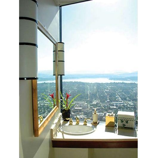 El baño más alto del mundo.Viendo la plataforma de baño.Los cuartos de baño en Colombia Torre son algunos de los más altos del mundo, y cada piso tiene su plaza 76, propio punto de vista del horizonte de Seattle.Aparte de las impresionantes vistas, cada uno tiene suelos de mármol, encimeras de mármol y bronce, accesorios sólidos y contienen su propio receptor. Aunque el cuarto de baño es técnicamente sólo para mujeres (Columbia Torre le gusta pensar en el baño como un “escape de tranquilidad para los días ocupados de cualquier mujer”), adquiere frecuentes visitantes hombres ansiosos de ver la vista.