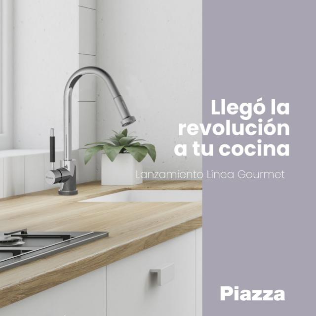 El Diseño, la innovación y la mejora tecnológica son junto a la calidad los pilares fundamentales sobre los que se basa la estrategia en Piazza. Desarrollan permanentemente nuevas líneas de Grifería y Sanitarios, con un recorrido de más de 132 años comprometidos y apostando fuertemente hacia la producción nacional junto a un diseño renovado y su gran tradición por las necesidades. Continuando con la política de expansión de la marca Piazza, y fortaleciendo el compromiso de siempre, acaba de lanzar al mercado seis nuevos modelos que se suman a la ya conocida línea Gourmet. Estos modelos apuestan por un estilo minimalista y moderno que se adaptan a cualquier cocina.