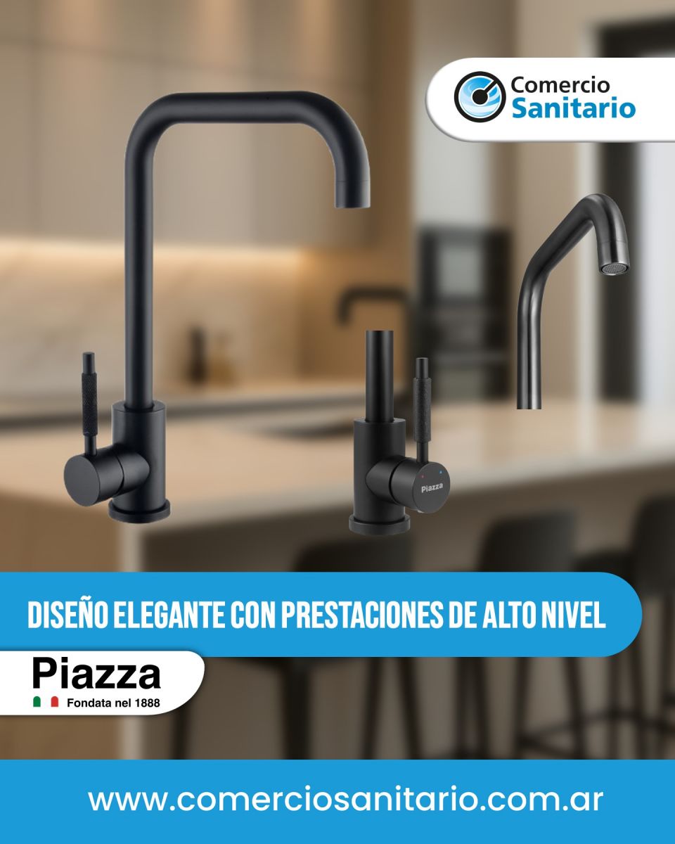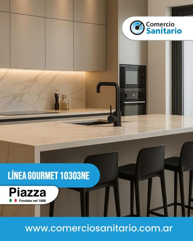 Monocomando Negro Línea Gourmet 10303NE de Piazza combina diseño elegante con prestaciones de alto nivel.