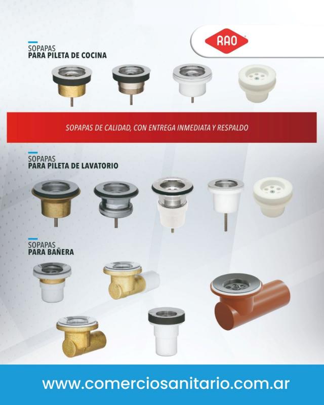 RAO cuenta con una amplia línea de sopapas para lavatorio, bañera y cocina, desarrolladas bajo estrictos controles de fabricación.