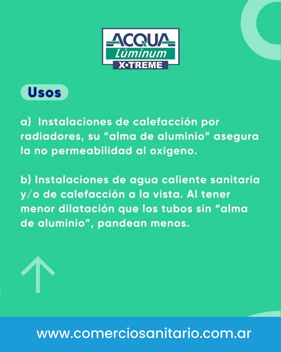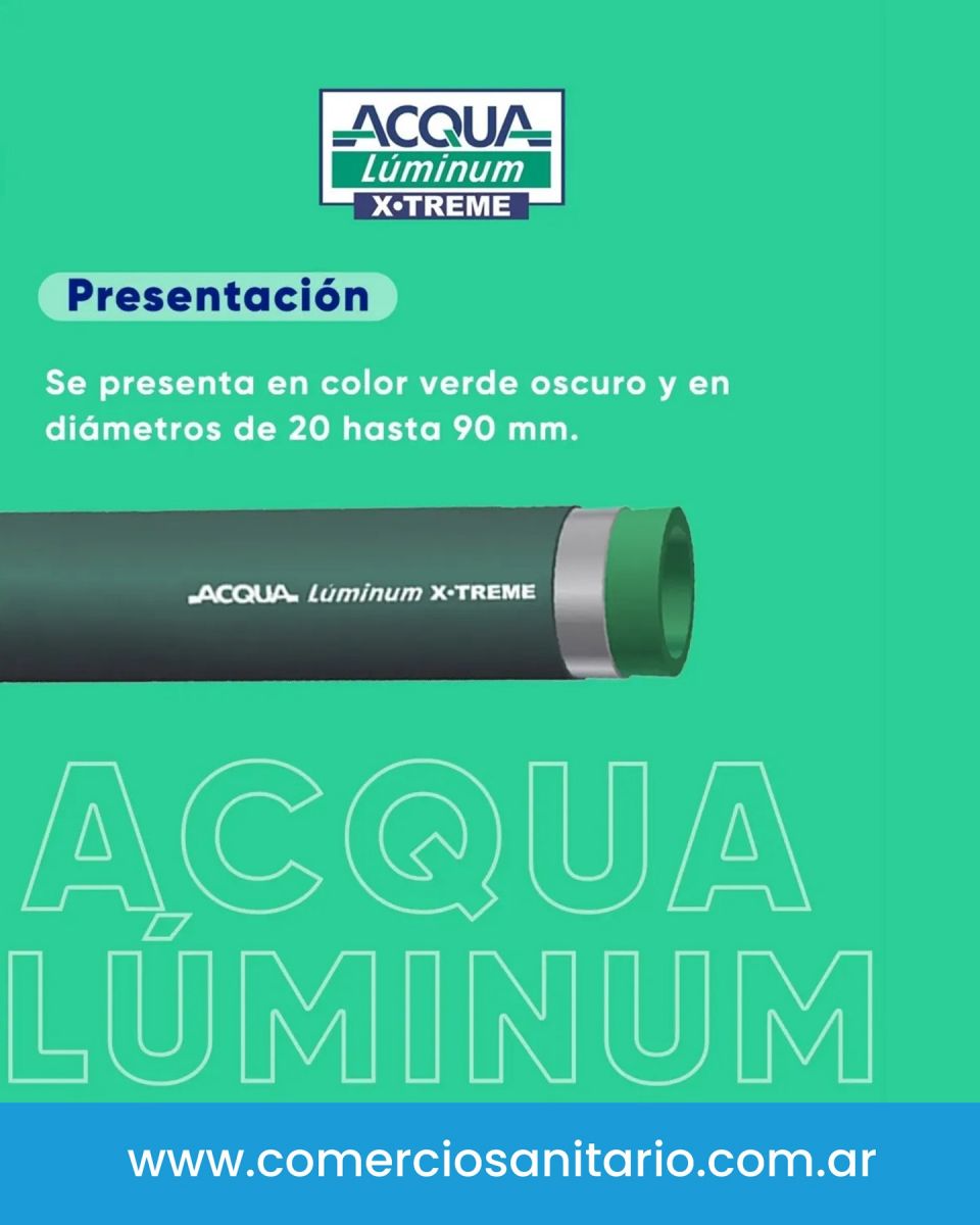 Fabricado en PPR CT de origen alemán, permite una mayor sección interior manteniendo la misma resistencia a la presión. Su capa de aluminio aporta rigidez, confiabilidad y lo vuelve ideal para instalaciones a la vista y calefacción por radiadores, con conexiones Acqua System PN 25.